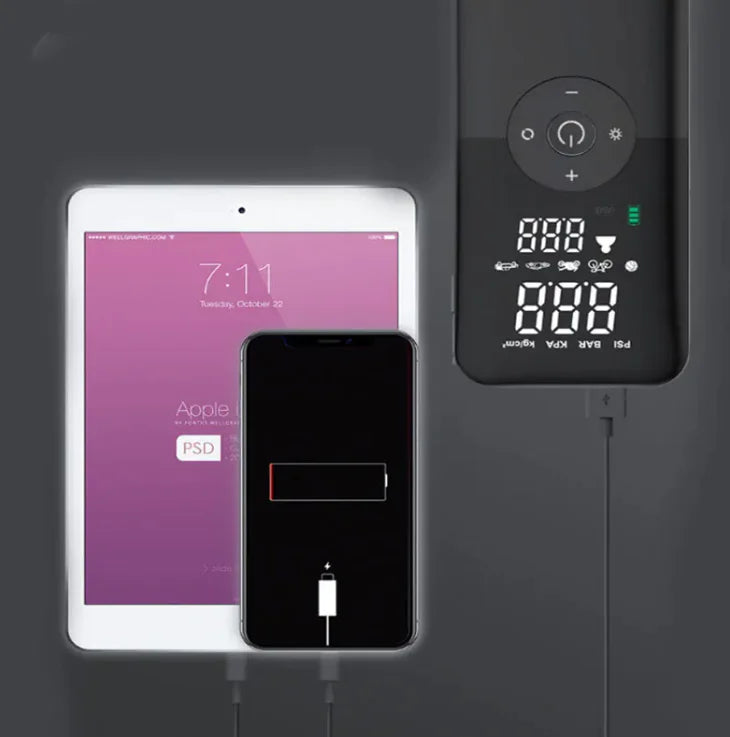 Experience hassle-free tire maintenance with our Wireless Digital Tire Inflator. This compact and powerful device makes inflating your tires quick and easy, ensuring you're always ready to hit the road.