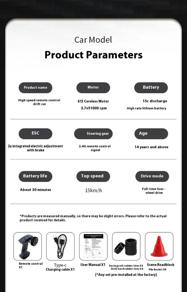 Experience the thrill of drifting with this mini RC four-wheel drift car. Designed for kids and teens (ages 7-14), it enhances skills like hand-eye coordination, vision, and emotional development while providing hours of fun.