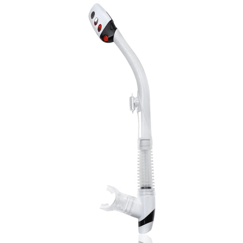 [【SMART TOP DRY VALVE】The top dry valve has a wider elliptical bore shape for more air to breathing. The completely dry top of the snorkel consists of a lever paddle flip instead of a ball...