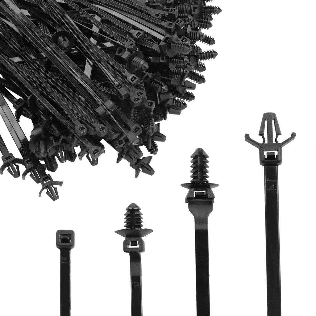 [FITMENT: These push mount cable zip ties are compatible with most cars. You can replace the aged cable zip ties with ours directly PREMIUM QUALITY: The self locking cable straps are made of premium quality nylon material which can withstand the high and low temperature test of -40 ℃ - 130 ℃. Meanwhile these push mount zip ties have good flame retardant strong tensile strength and longer service life "PACKAGE INCLUDED: There are four different sizes push mount cable ties thirty of each size one hundred and twenty in total which meets needs of cars different wiring harnesses cables and small hoses" EASY TO USE: Tidy up the wiring harnesses cables or small hoses that need to be tied. Take the tail end of the cable zip tie. Pass through the head of cable zip tie. Push the cable head until the wiring harness is locked. Or use these wire loom clips lock wiring harnesses YOU WILL GET: Order from Heiher you will get One Hundred and Twenty Nylon Self Locking Cable Strap]